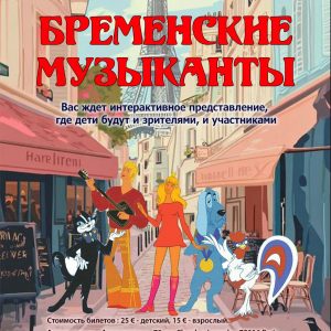 Ne manquez pas un spectacle musical « Les Musiciens de Brême », interprété par les comédiens du Théâtre Confetti ! Après le succès incroyable du printemps dernier, nous vous proposons une nouvelle représentation le 16 novembre à 11h00 et à 14h00.