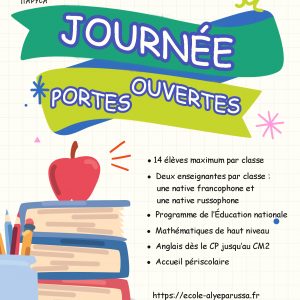 Dimanche 22 mars de 10h à 12h nous vous invitons dans notre école pour decouvrir notre établissement – Ecole maternelle et élémentaire bilingue franco-russe. Choisir de scolariser votre enfant à l’école bilingue « Alye Parussa », c’est lui offrir des conditions éducatives exceptionnelles dès le plus jeune âge. Nous enseignons un double programme : les programmes de l’éducation nationale française et russe en parallèle. Et cela dans toutes les matières.