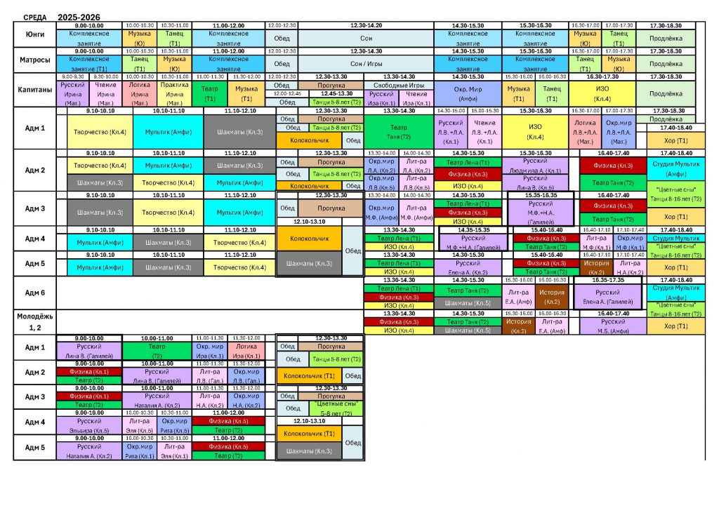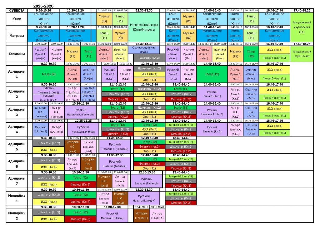 Emploi du temps (mercredi ou samedi)